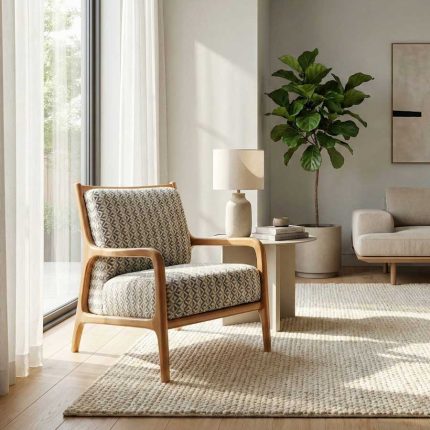 Zem Lupa Bohem Ahşap Berjer , Açık Krem